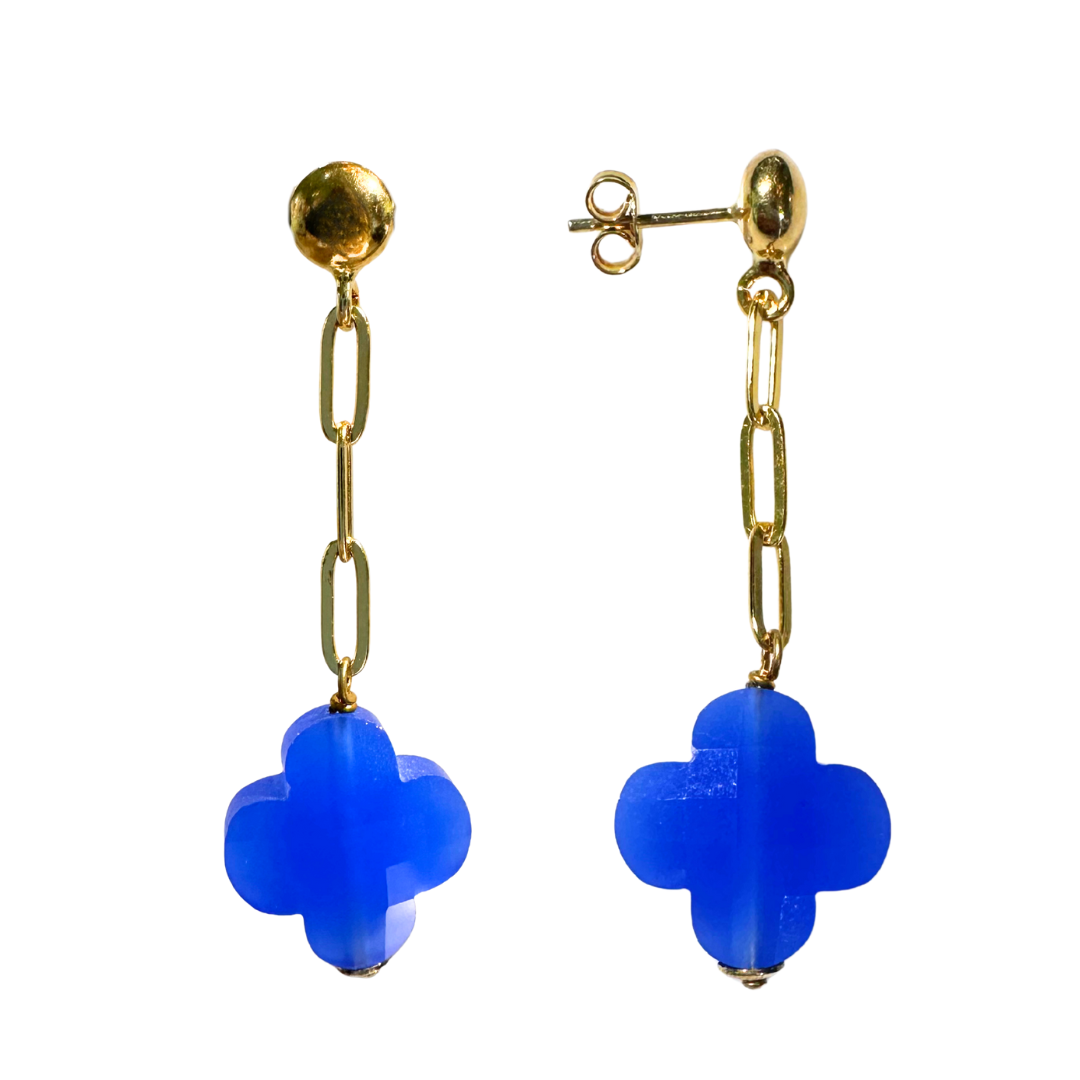 De klavervorm geeft de oorbellen een speelse maar elegante uitstraling — een symbool van geluk, vrouwelijkheid en karakter. Het contrast tussen het levendige blauw en het warme goud zorgt voor die typische Miccy’s-signatuur: opvallend, maar altijd verfijnd.