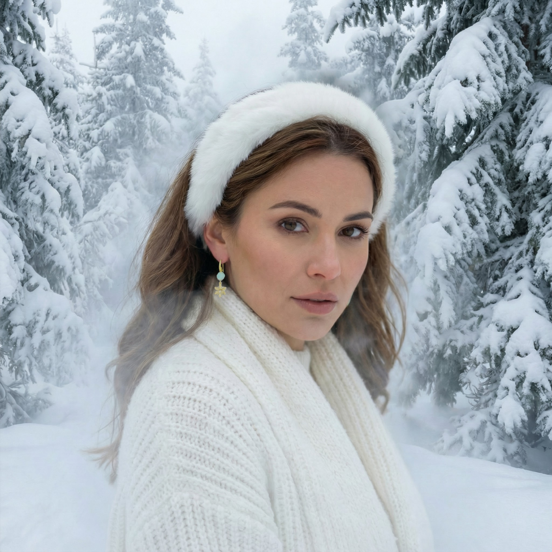 Zachte winterglans, gevangen in een paar oorbellen.